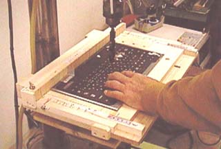 指先の不自由な人のためにパソコン用キーボードガードを作る際、キー間隔は密着しているので、穴あけの位置決めに苦労し、最悪は穴位置がずれてしまうと破損して作り直さなければなりません。本開発品は、穴あけを容易にする固定台で、キー間隔に合わせた溝を設けました。この溝を基準として、ガイド板を取り付けた加工材料を前後左右に平行移動できるため、さまざまなキーボードのキー間隔合わせて、楽に正確な位置決めをすることができるようになりました。穴あけの失敗も少なくなり、製作時間も大きく短縮できました。