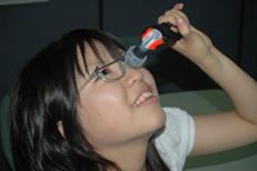 目薬を点す動作が困難な方に対して、目薬が上手く注せるように補助する自助具を考えました。目薬を点す動作で問題になることとして、「目薬を押して薬を出すことができない」ということと、「薬を出すことはできるが、目薬が上手く入らない」という点が考えられます。この2点から考えて、まずこの自助具を使うことによって、装具自体もまず目の周りでしっかり固定され、目薬も目に薬が直接入る位置で固定されるので、視力が弱い方や、振戦がある方など「目薬が上手く目に入らない」方でも簡単に入れることができます。また、目薬を挟んで固定できる装具をつけることで、握力が弱い方や、手指の巧緻性に問題がある方に対しても装具を上肢で把持して、軽く力を加えて頂くだけで、目薬が簡単にでるようにしてあります。