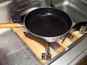 私、昨年12月末脳梗塞のため、突然右手が不自由になり、現在通院でリハビリ中です。私は75歳、妻も70過ぎ、時々食事の後片付けなど手伝っています。しかし、片手で食器を洗う事の大変さを身にしみて感じました。茶碗、皿など、食洗器に入るものは良いですが、鍋・フライパン・ボウルなど、丸いものはくるくる廻り手に負えません。滑り止めのマットも、濡れたり洗剤が付くと効果がありません。そこで考えたのが、今回開発した、「鍋洗いの補助具」です。不自由な片手の代わりに、鍋を固定してくれ、しかも、大小の鍋・ボウルを一つの補助具で固定してくれます。私自身が、左手だけで製作したので、仕上げは不細工ですが実際に使用中で、便利に使ってます。