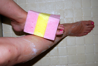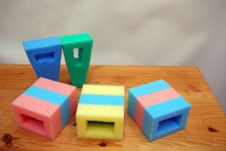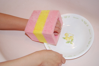 上肢に障害がある人はお風呂に入る場合、通常足でスポンジやタオルを「つかみ」「洗う」ことが多いです。しかしそれは実際大変なのではと思いこのスポンジを考えました。 このスポンジは「つかむ」「洗う」という同時にしていた2つの動作を一つにまとめ「洗う」という動作のみで使える楽で楽しいスポンジです。 そして、これは他の部品などは付けずスポンジだけで作られているのでコストも安く消耗品にふさわしい実用的な自助具です。