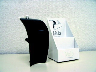 Vela(イタリア語) 意味:帆(形状が帆船の帆に似ていることから) シューホンや義足装着者、膝や腰の痛みがある方は靴を選ぶ条件として履きやすさが重視されています。手指に障害がある場合、一般的な靴べらの使用に困難が伴います。 Velaは靴の踵にあらかじめ取り付けて使用する靴べらで、手で支える必要がなく立ったまま靴が履けるため使用者の負担を軽減できます。また、踵を靴に誘い込む形状で、ぴったりした革靴や、紐をしばった靴でも楽に履くことができます。 お客様からの「デザインは気に入ったけど履きづらいから楽に履ける靴を選んだ」というご意見をいただきました。そのような方にもう一度自分が履きたい靴を選んでいただきたい、服を着替えるように靴も気軽に選んでいただきたいと考え商品化を行いました。