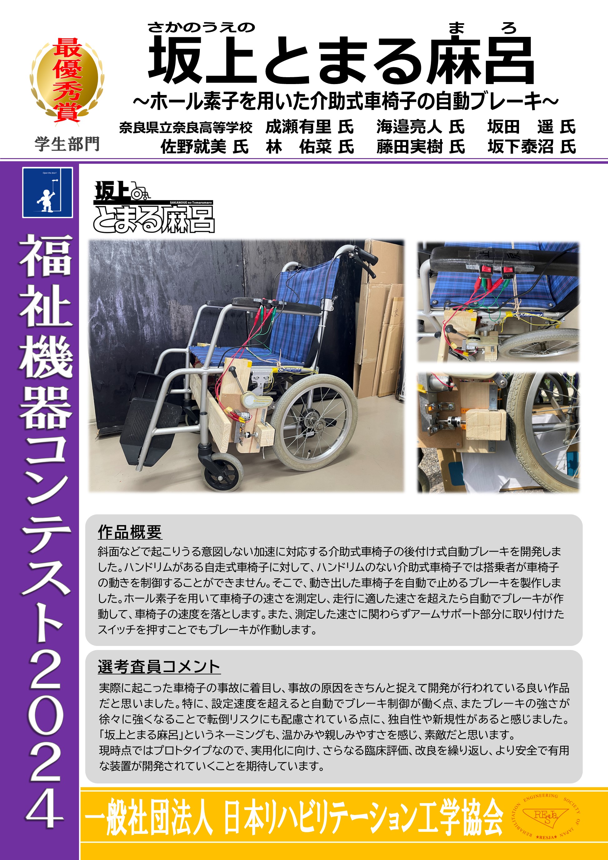 - 坂上とまる麻呂 〜ホール素子を用いた介助式車椅子の自動ブレーキ〜