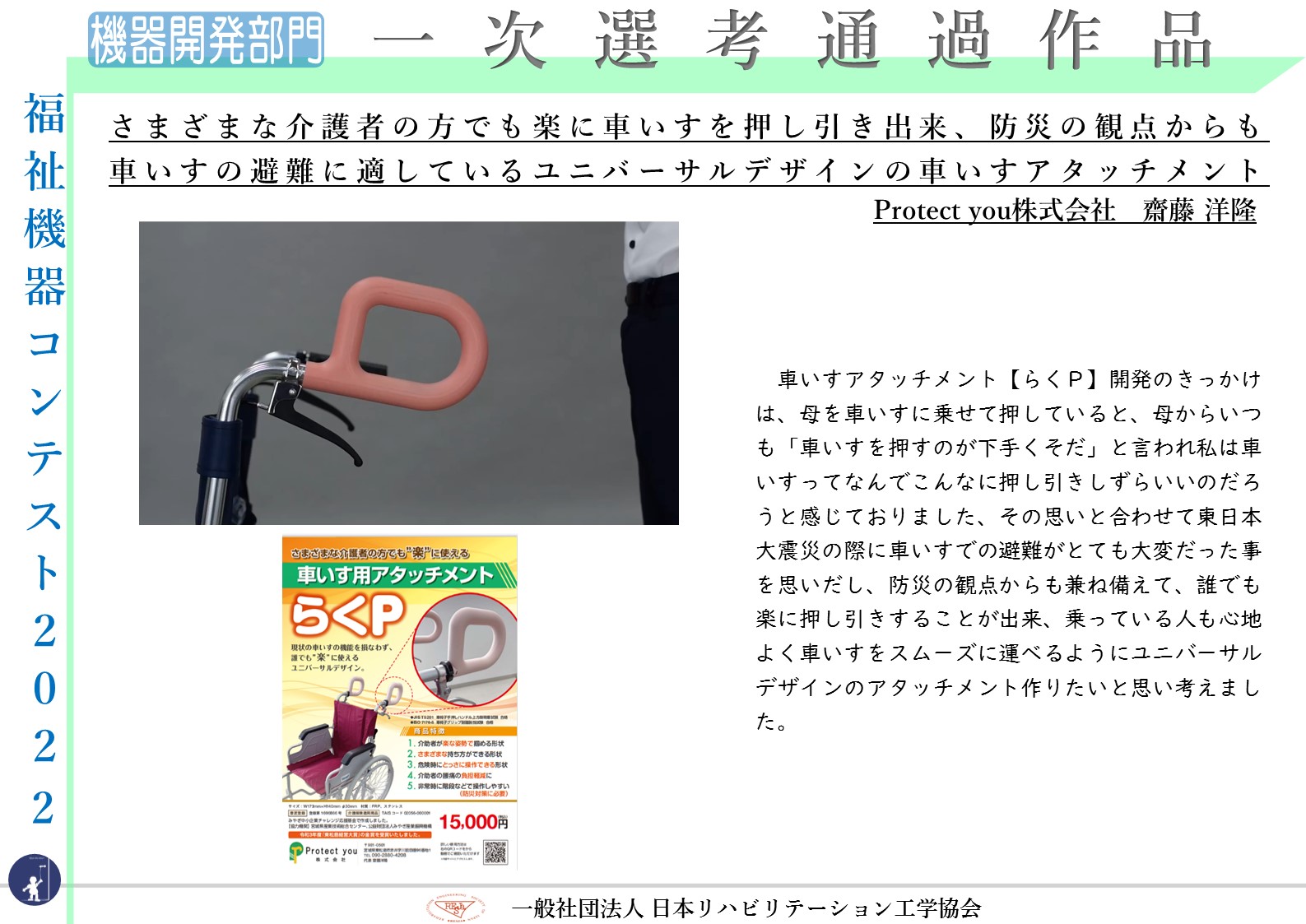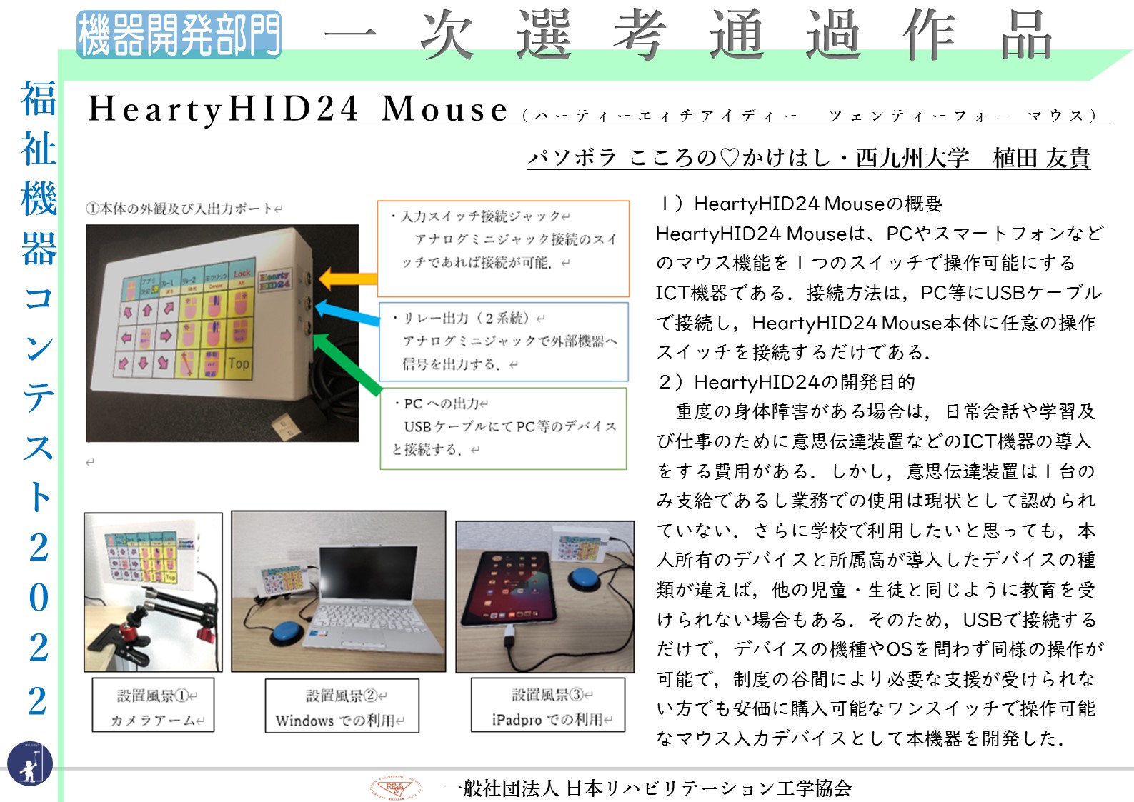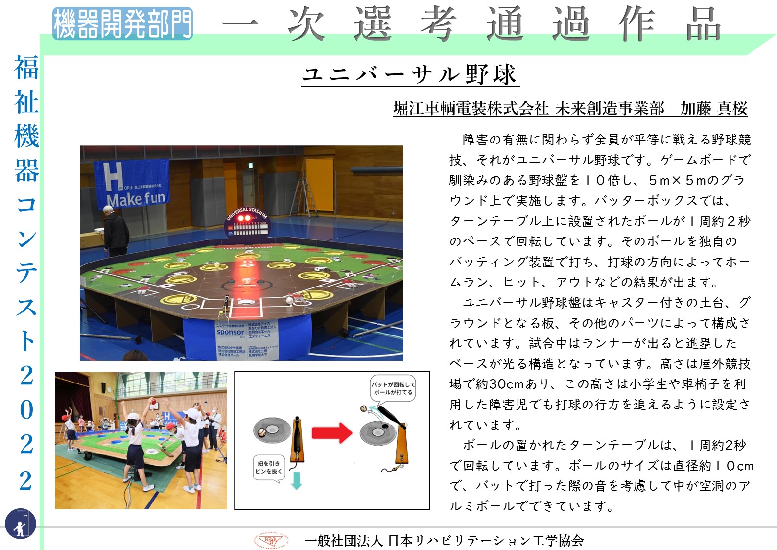 福祉機器コンテスト2022機器開発部門一次選考通過作品一覧