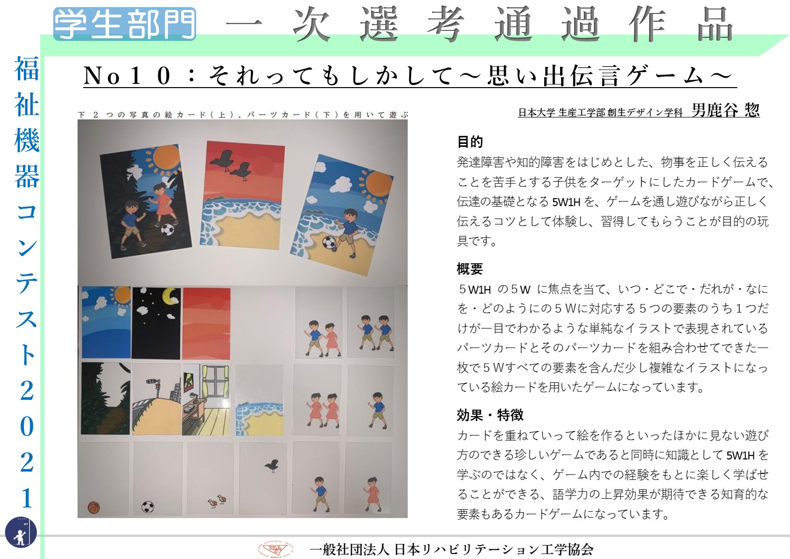 福祉機器コンテスト2021学生部門一次選考通過作品一覧